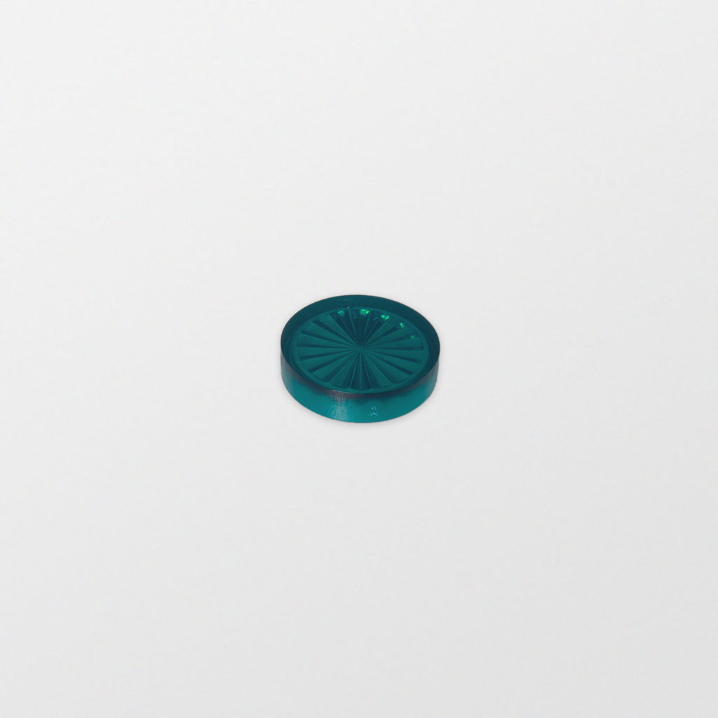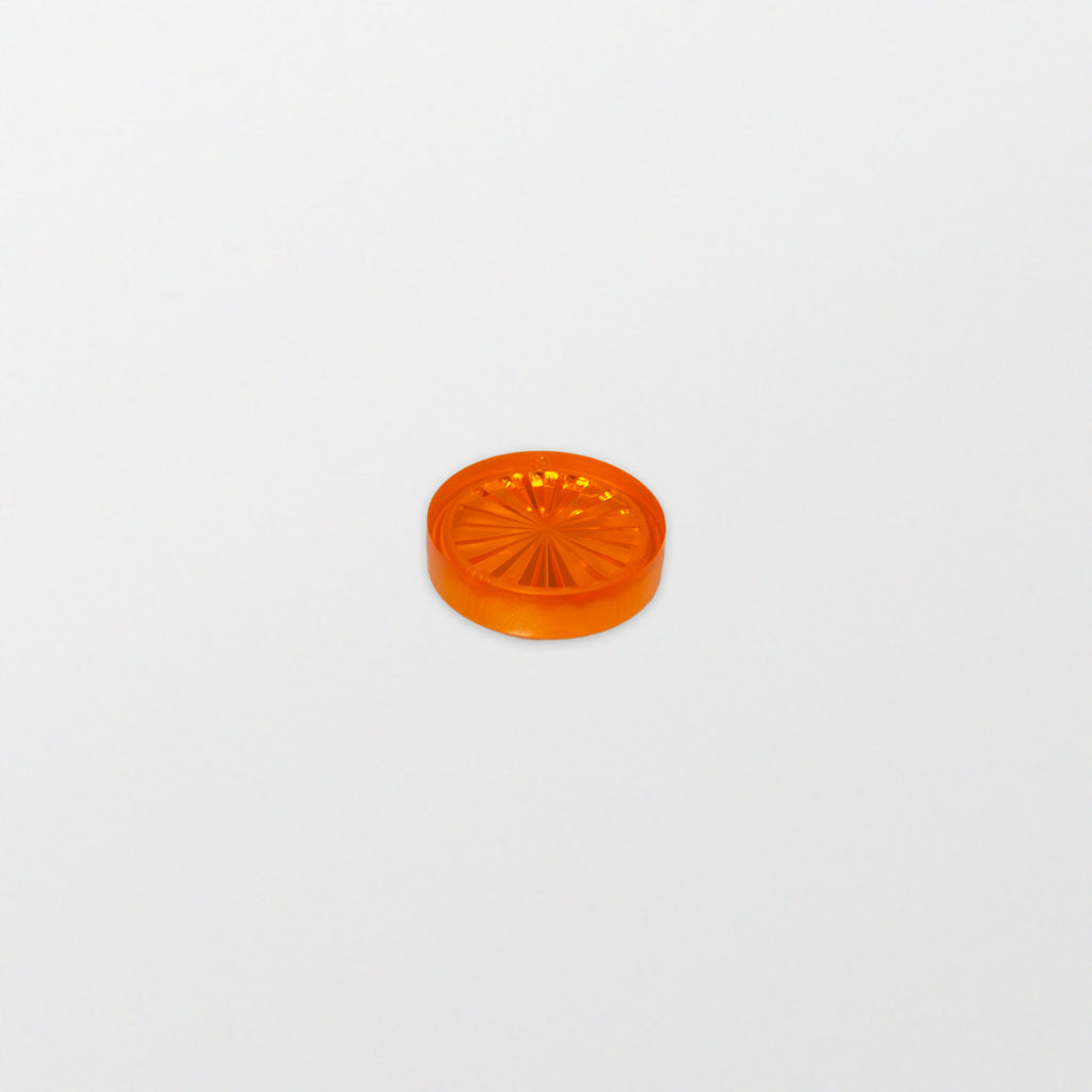 Playfield insert 1" round, "Starburst". Note: Some plastic inserts contain an imprinted letter on the surface that needs to be sanded down if overlay decals are to be used.